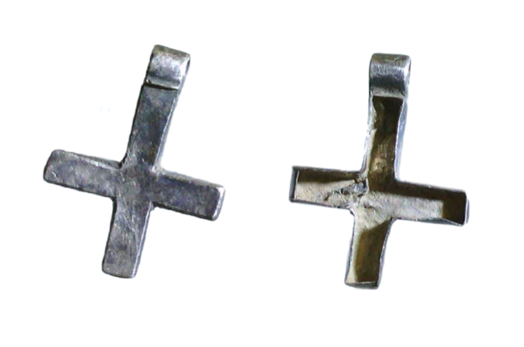 AOM : A silver Reliquary Pendant, an incomplete hollow crucifix, missing the panel, but with integral loop. Probably late medieval to early post med.Found by Richard G.